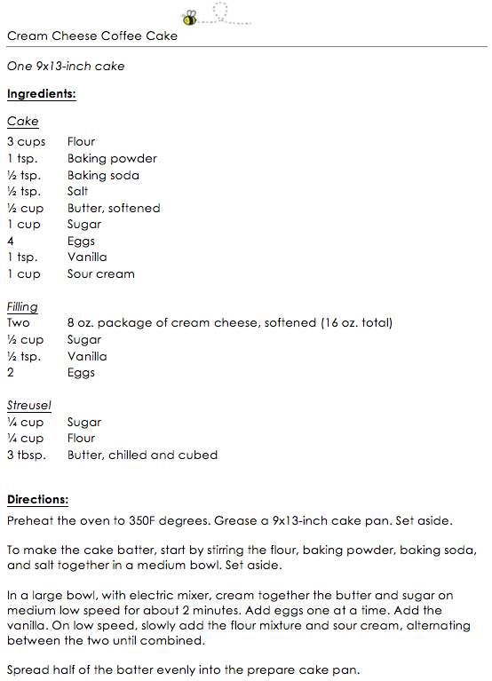 Cream Cheese Coffee Cake snippet 1 April 30, 2018 Return to: Cream Cheese Coffee CakeFull resolution (554 × 767) Image navigation Previous Image