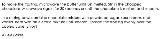 Sour Cream Chocolate Cake snippet 2 January 8, 2020 Return to: Sour Cream Chocolate CakeFull resolution (546 × 134) Image navigation Previous Image Next Image