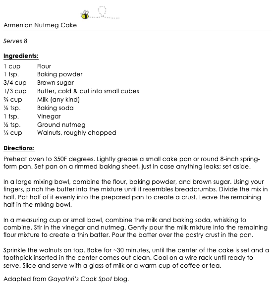 Armenian Nutmeg Cake snippet April 26, 2020 Return to: Armenian Nutmeg CakeFull resolution (559 × 585) Image navigation Next Image