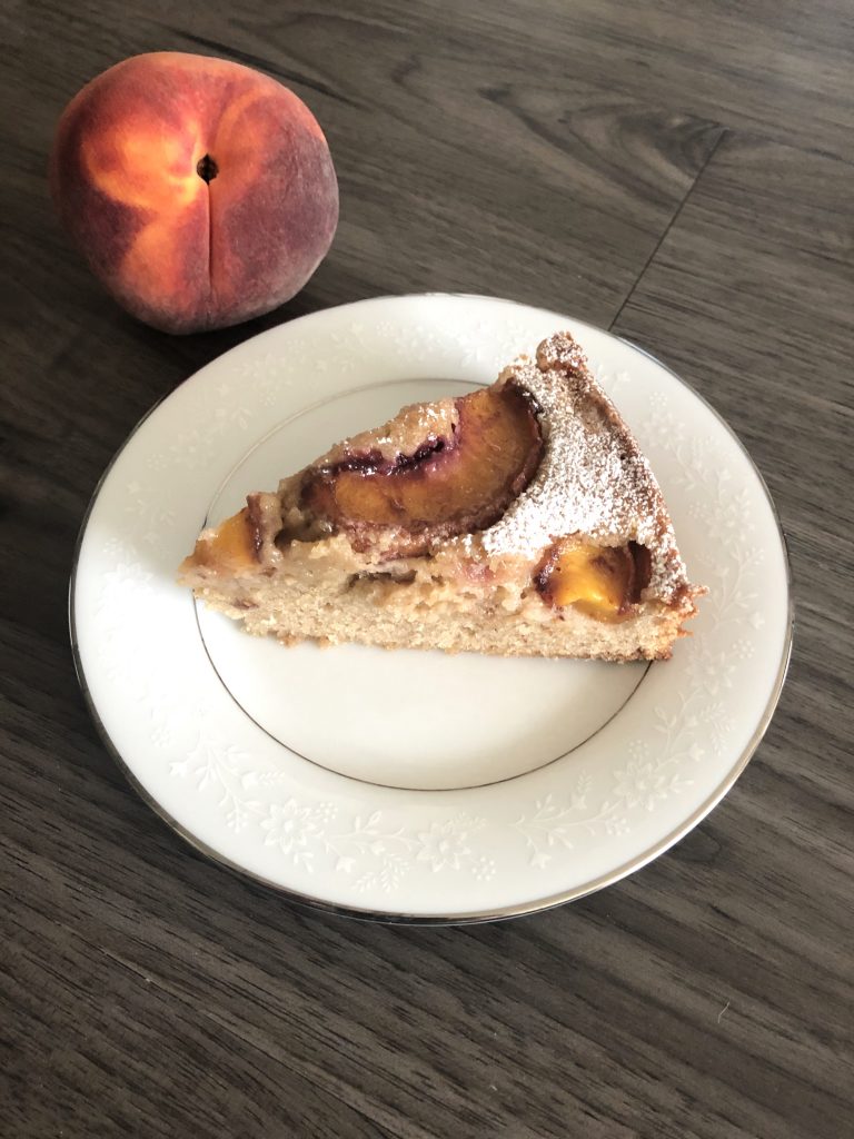 This is a simple, delicious, and slightly spiced cake with fresh peach on top. If you don't have peach, this cake is very versatile and you can add any stone fruit that you have! You'll find yourself making it over and over again.